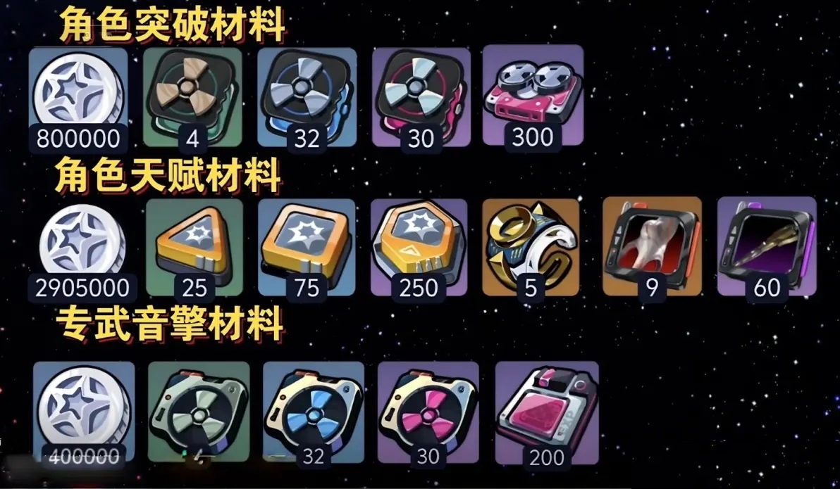 1. 角色等級(jí)提升材料