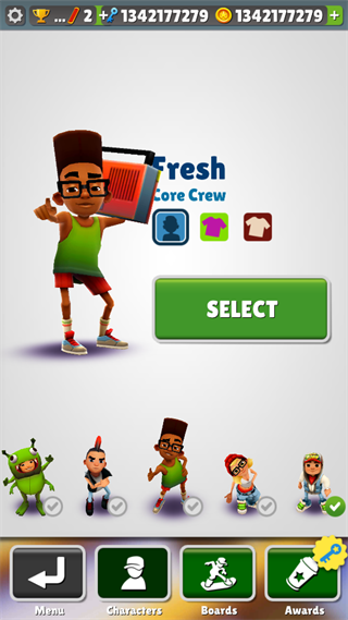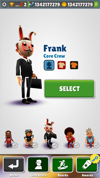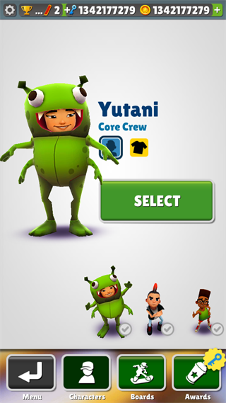 2、玩家扮演不同角色在地鐵奔跑收集貨幣道具,避免障礙保持生命值,盡可能長久存活。