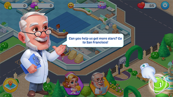 5、上方進度條可以看到獲取星星的進度和醫生護士的人數