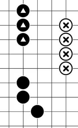 2.氣:在棋盤上與棋子緊緊相鄰的空交叉點,一個棋子的氣數不可能超過四氣,但相連的棋子則可能有四氣以上。在對方棋子的活路上落子緊迫,稱為“緊氣”。