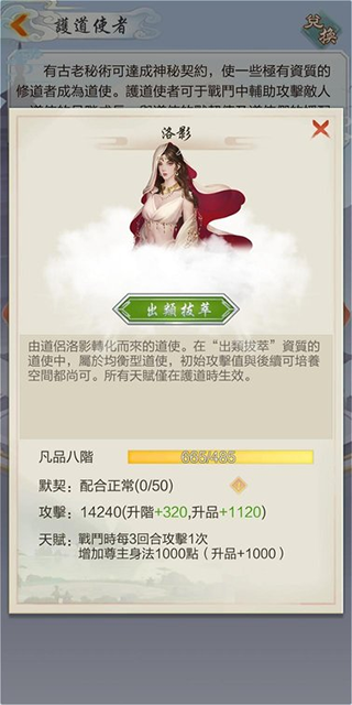 可以看到,每提升1級,道使攻擊力增強10%、尊主的四維屬性「各加」2400點,實在是恐怖如斯。