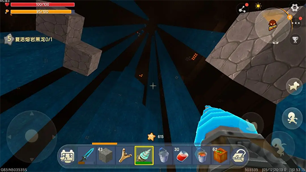 三、進(jìn)入龍心直奔龍巢底部,找準(zhǔn)機(jī)會(huì)利用石塊升高進(jìn)入龍巢,用石塊把自己固定在水柱下面,吃氧氣豆防止溺水,吃西瓜汁加防火狀態(tài)。
