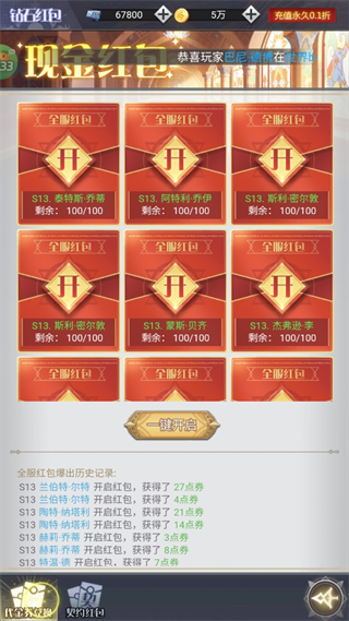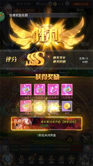 3、零氪福利:Boss戰掉落代金券,全民共享10億代金券獎勵;