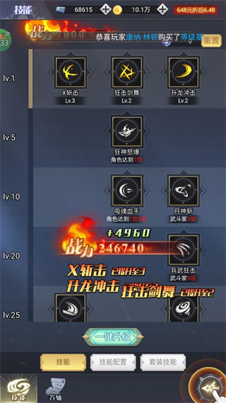 4、給角色提升技能等級可以讓我們更容易的過后續關卡。