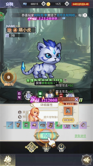 5、獲取寵物可以大大提升戰力,給寵物升級。