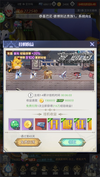 1、登錄豪禮:贈送648元充值卡、天空套裝及抽獎券等珍稀道具;2、闖關收益:擊敗Boss與小怪掉落充值卡及紅包,每日活躍獎勵超萬元;