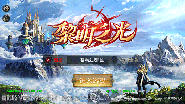 1、打開黎明之光手游,登錄賬號選擇區服后點擊進入游戲;