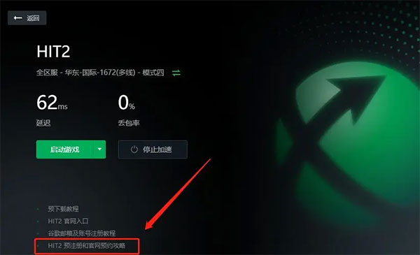 2、在加速界面點擊“hit2預注冊和官 網預約攻略”進入教程。