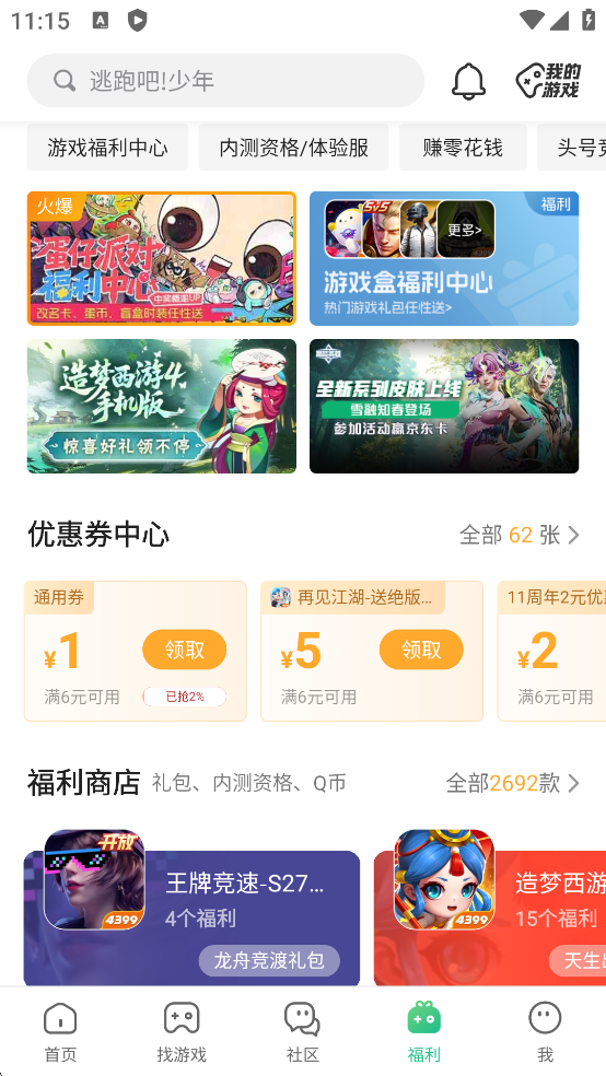 ③盒幣禮包領取前盒幣不足,可以前往游戲盒充值或者做任務賺取哦。