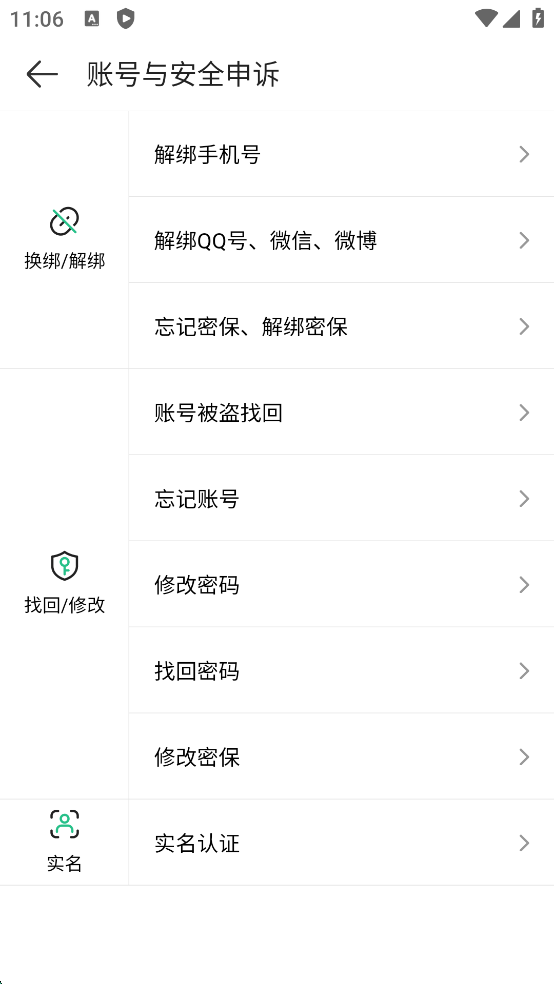 選擇【賬號與安全申訴】選擇找回/修改功能或者是其他功能自助找回~