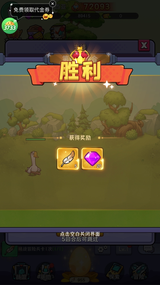 6、打贏獲得獎勵。