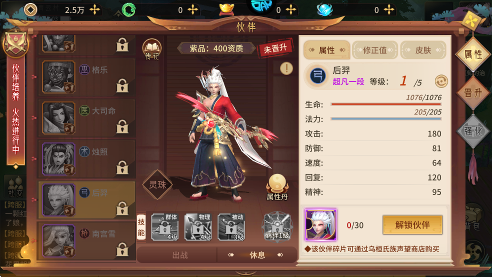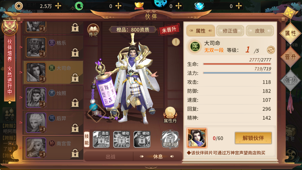 被動技能:大司命100%免疫石化與混亂,并且增加等級*0.8的法攻屬性