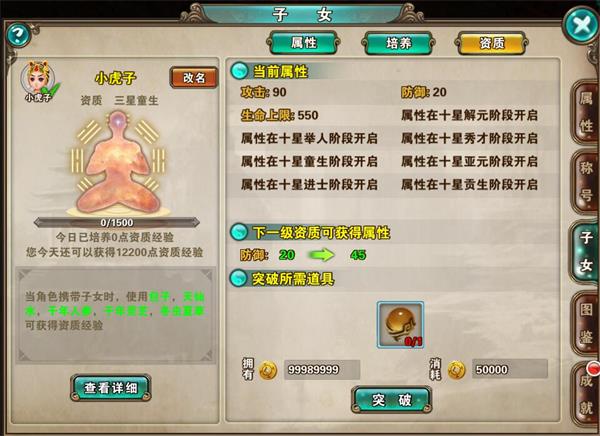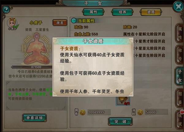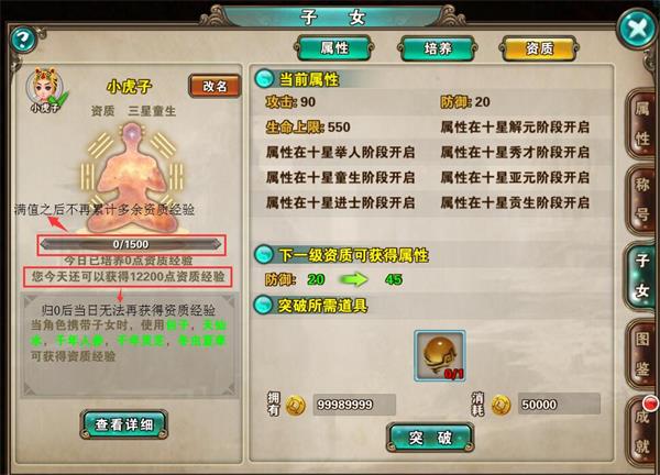 破天一劍充值折扣版子女資質(zhì)玩法介紹