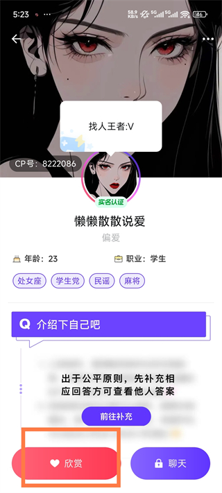 5、找到之后點擊欣賞【雙方互相欣賞時免費聊天】