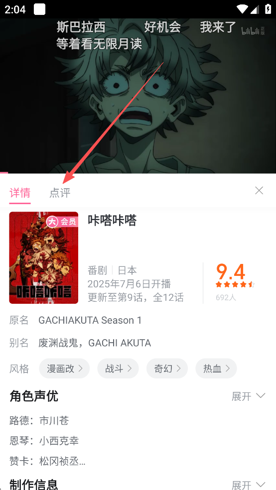 1、打開嗶哩嗶哩動畫App,在首頁中點擊動畫界面,并選擇你要觀看的動畫