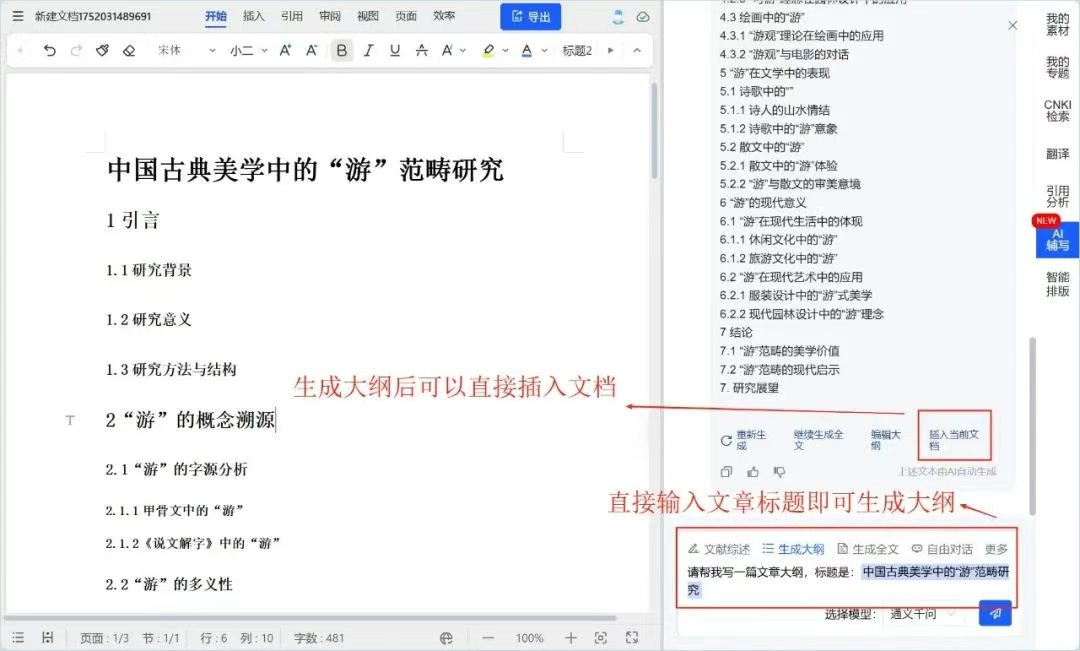 生成后點擊【插入當前文檔】,大綱即可插入內置文檔,省去手動 排版 的麻煩。