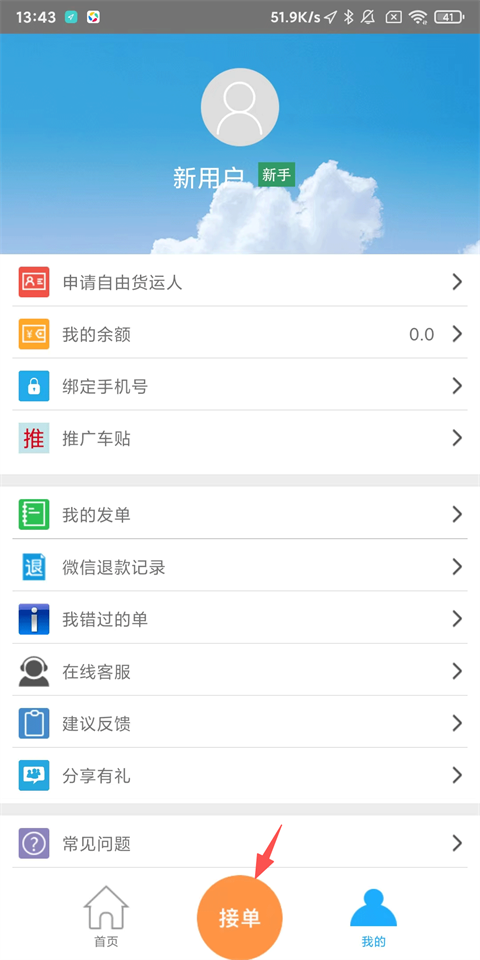 1、下載注冊并登錄貨運幫APP,點擊下方接單按鈕;