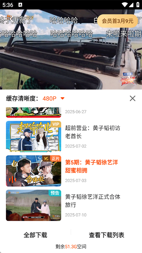 4、選擇集數(shù)或期數(shù),點擊即可下載,緩存的視頻前往查看下載列表查看。